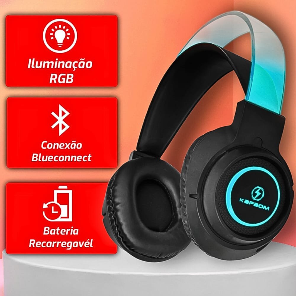 Fone de Ouvido gamer Origimal RGB Headphone Bluetooth Sem Fio LED COLOR Kapbom KA-755